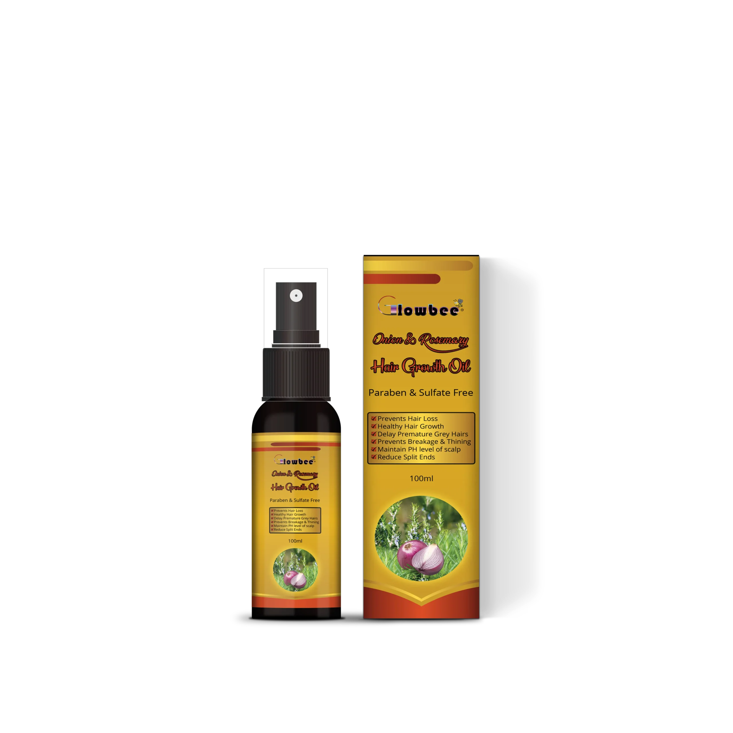 Glowbee Natural Organics, is Sulphate and paraben elimates in onion & Rosmary essential oil, which stimulates your scalp and encourages the formation of new hair, resulting in a thick, lovely, shiny head of gorgeous hair. Our essential oil stimulates your scalp and encourages the growth of new hair, resulting in a thick, stunning, shiny head of exquisite hair. The aroma has a stimulative effect which is good for overcoming lethargy. For a. Burst of energy. When you’re feeling tired and brain-dead but you have more work to accomplish, put a little into a diffuser and spray into the air.